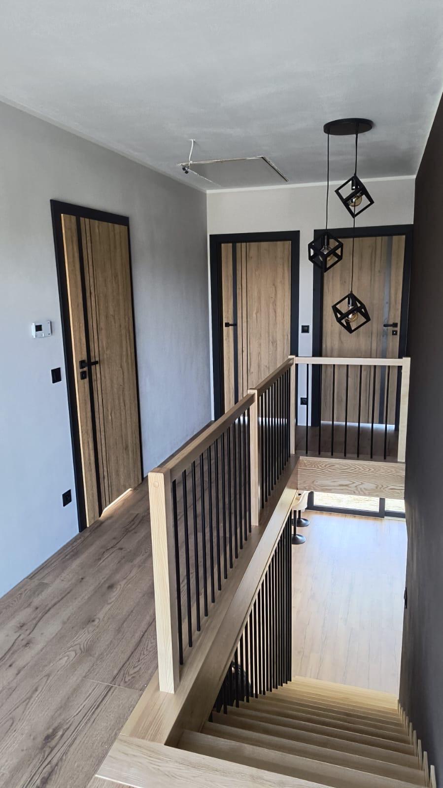 Pierwszym typem zamontowanych przez nas skrzydeł były drzwi Erkado w stylu loft. Ich niepowtarzalny design charakteryzuje się przede wszystkim ciepłym, bardzo naturalnym dekorem dębowym. Ich unikalny, nowoczesny wygląd podkreślają także wyraziste, pionowe czarne intarsje. Dodają one zamontowanym drzwiom współczesnego i lekko industrialnego charakteru, idealnego do nowoczesnych wnętrz. W tej realizacji zastosowano również elegancką, kontrastującą, czarną ościeżnicę. Wybór padł ponadto na praktyczne drzwi bezprzylgowe, które tworzą idealnie jednolitą płaszczyznę ze ścianą. Całość konstrukcji została precyzyjnie osadzona na solidnych, funkcjonalnych, regulowanych ościeżnicach Erkado. Gwarantują one nie tylko idealne dopasowanie do grubości ścian. Zapewniają także nienaganne wykończenie i estetykę na lata. Ewentualna subtelna, czarna szyba dodaje całości wyrafinowanej elegancji. Takie stylowe drzwi wewnętrzne dębowe styl loft zamontowane w Rzeszowie to doskonały i bardzo świadomy wybór. Podkreślają one indywidualny charakter każdej współczesnej aranżacji mieszkania lub domu. Podkreślają one indywidualny charakter każdej współczesnej aranżacji mieszkania lub domu. Jeśli szukają Państwo specjalistów od takich prac, nasz montaż drzwi w Rzeszowie spełni najwyższe oczekiwania.