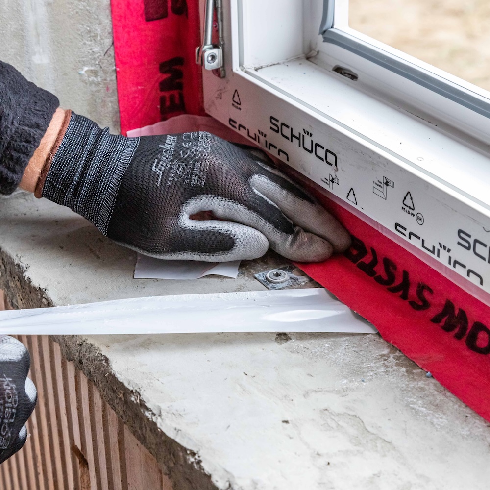 6. Przyklejanie taśmy zewnętrznej do muru na przykładzie SWS Basic Plus UV Outside