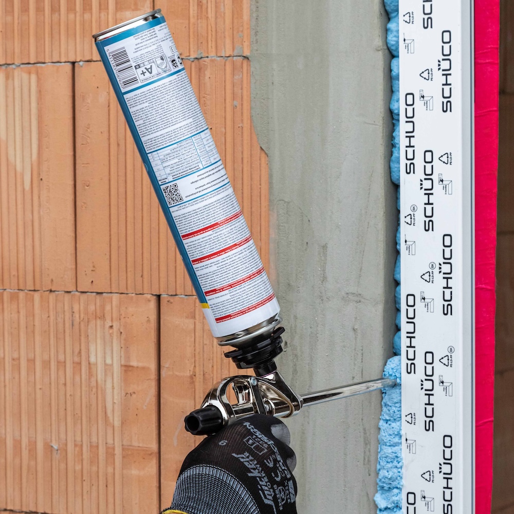 Po całkowitym utwardzeniu pianki obcinamy jej naddatki. Elastyczna pianka wymaga zastosowania ostrego narzędzia. Pianki nie należy odrywać ani ugniatać – to pogarsza parametry izolacyjności termicznej. Odcięcie pianki wzdłuż lica ścian zapewnia właściwe przyleganie taśmy do płaszczyzny muru.